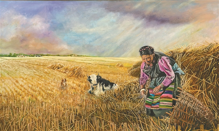 圖為鄒文江油畫作品《田野間的勞作時(shí)光》(局部)。
