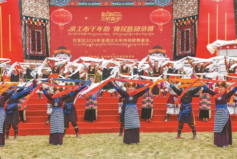 11月21日(工布新年大年初一),在林芝市巴宜區(qū)依舍莊園,“承工布千年韻 鑄民族團(tuán)結(jié)情”——巴宜區(qū)2026年“非遺過(guò)大年”傳統(tǒng)歌舞盛會(huì)精彩上演。整場(chǎng)演出圍繞工布年味、非遺傳承、民族團(tuán)結(jié)三大主題,分設(shè)“歲月如歌·福滿工布”“匠心歡歌·情系家園”“團(tuán)結(jié)歡歌·共譜華章”三大篇章,20余個(gè)節(jié)目涵蓋男女聲獨(dú)唱、民俗舞蹈、器樂(lè)演奏等多種表演形式,將高原獨(dú)特民俗風(fēng)情與深厚文化底蘊(yùn)相融合,為市民游客帶來(lái)了一場(chǎng)具有民族特色的視聽(tīng)盛宴。