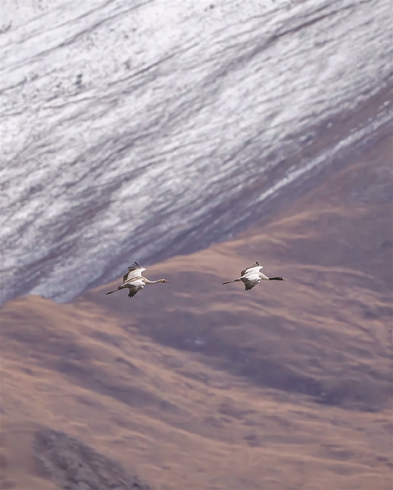 巡護(hù)路上最讓他牽掛的,是受傷的黑頸鶴。二十年間,他先后救助過翅膀折斷、腿腳受傷的鶴類,憑著經(jīng)驗(yàn)與敬畏之心,成功救活6只?!坝兄粩喑嵝→Q,我每天喂小麥、守了一個(gè)多月,它才慢慢能飛?!被貞浿链耍壑袧M是溫柔,“看著它們重返天空,比什么都開心。”這些經(jīng)歷讓他成了黑頸鶴的“活字典”,從羽毛色澤變化到作息規(guī)律更替,無一不曉。