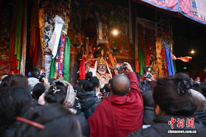 12月4日即藏歷十月十五日是藏族傳統(tǒng)的節(jié)日“白來日追”,俗稱“仙女節(jié)”、“白拉姆節(jié)”等。相傳藏傳佛教最高護法神之一班丹拉姆的女兒白拉姆,不顧母親的反對與赤尊贊私定終身,班丹拉姆一怒之下將赤尊贊趕到拉薩河南岸,規(guī)定二人僅每年的藏歷十月十五日相見。圖為信眾在大昭寺朝拜白拉姆像。中新社記者 貢嘎來松 攝