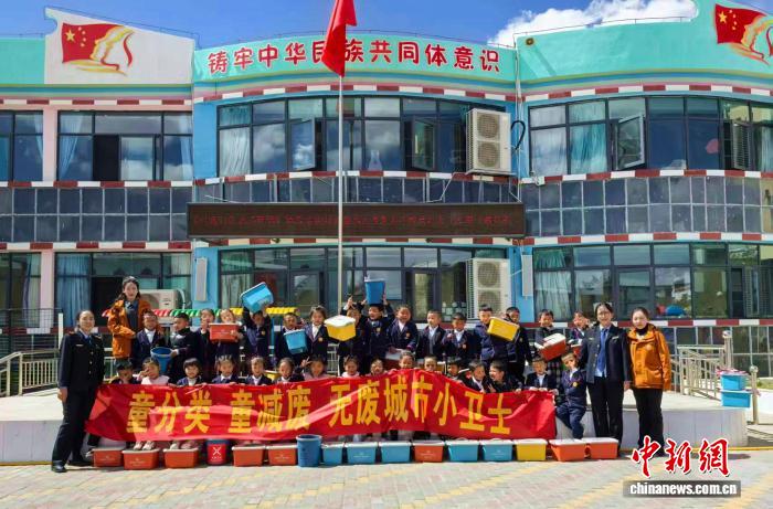 圖為阿里地區(qū)參與“無廢校園”建設(shè)小衛(wèi)士和相關(guān)工作人員合影。阿里地區(qū)生態(tài)環(huán)境局 供圖