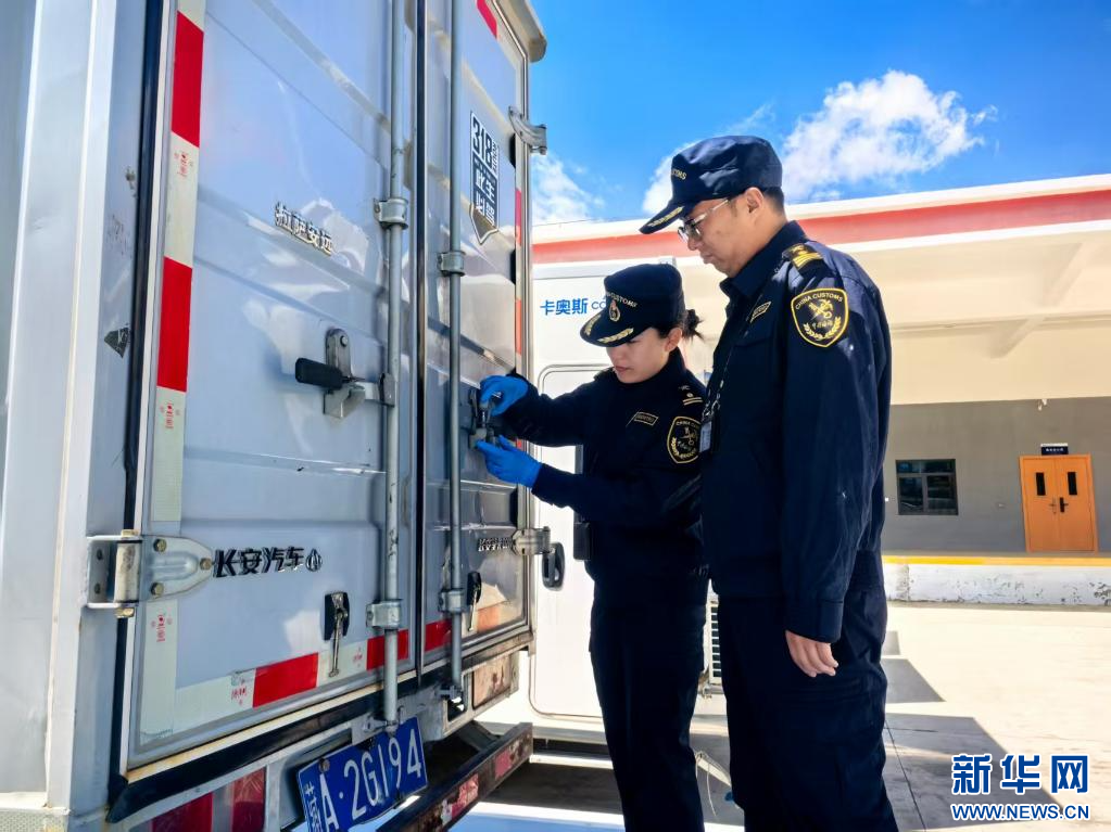 11日,海關關員在拉薩貢嘎國際機場國際貨站對進出口貨物進行監(jiān)管作業(yè)。(拉薩海關供圖)