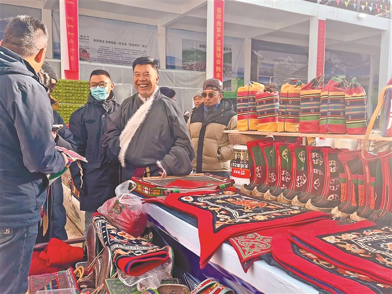 走進(jìn)展銷(xiāo)會(huì)現(xiàn)場(chǎng),最直觀的感受就是品類(lèi)全、品質(zhì)好,藏北特色撲面而來(lái)。全市11個(gè)縣(區(qū))的1485家參展商齊聚于此,帶來(lái)100余種高原特色產(chǎn)品,把草原上的好東西都搬到了消費(fèi)者面前。特色畜產(chǎn)品是當(dāng)之無(wú)愧的消費(fèi)“主力軍”,“那曲牦?!钡乩順?biāo)志產(chǎn)品、嘎?tīng)柕碌葏^(qū)域品牌,憑借“云端牧場(chǎng)、黃金奶源”的獨(dú)特品質(zhì),一亮相就成了爆款,不少市民圍著展臺(tái)詢價(jià)選購(gòu)。