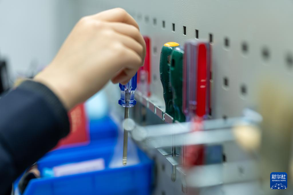 1月6日,拉薩基礎(chǔ)設(shè)施段電務(wù)專修車間繼電器檢修工區(qū)的信號工路東燕在拿取螺絲刀。新華社記者 旦增尼瑪曲珠 攝