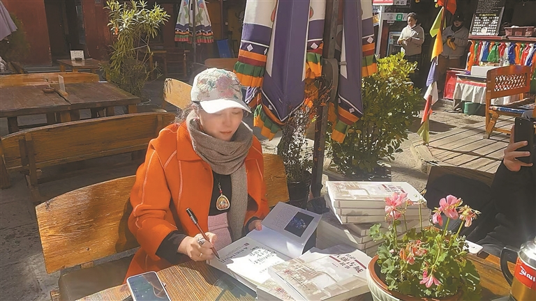 該書一經(jīng)出版,便在各社區(qū)銷售一空。次仁羅布、敖超、劉亮等多位教授學(xué)者紛紛閱讀并給出高度評價。西藏文聯(lián)黨組副主席、西藏作家協(xié)會主席次仁羅布說它“能觸摸到雪域古城非遺文化的溫潤溫度,也能聽見百年古建沉淀的歲月回響?!蔽鞑刈灾螀^(qū)群眾藝術(shù)館黨組書記,西藏作家協(xié)會副主席,拉薩市作家協(xié)會主席敖超感慨道:“以細(xì)膩筆觸與嚴(yán)謹(jǐn)考據(jù)勾勒出八廓街的人文肌理,讓非遺技藝、古建院落與鮮活人物躍然紙上。”拉薩市政協(xié)黨組成員、副主席,八廓古城黨工委書記劉亮更是直夸:“滿格格用20多萬字的深情書寫,為讀者打開了讀懂八廓街的密鑰,也讓高原文化的獨特魅力在文字中得以永恒留存?!?/p>