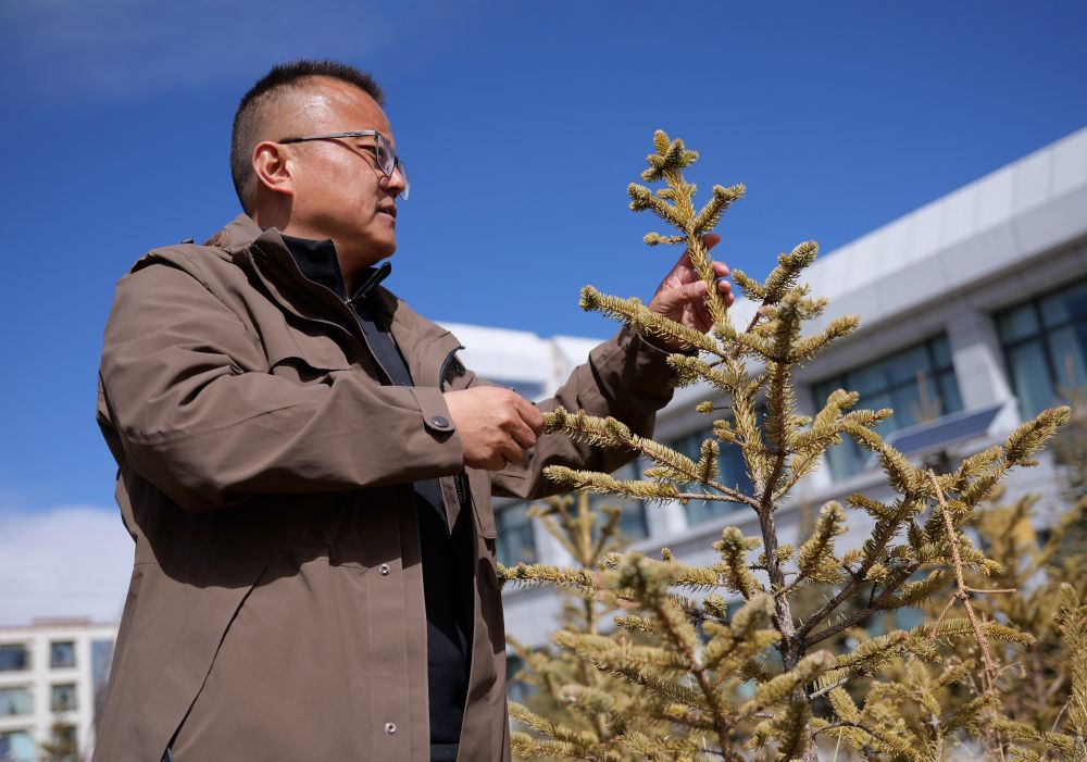 3月20日上午10點30分,扎西像往常一樣來到市科技局的院子里,仔細查看樹木的長勢。他彎腰伸手,摸了摸樹的葉子和枝條,又踩了踩樹下的土壤。“越冬情況總體穩(wěn)定,也有了返青跡象,可以開始澆水、施肥了?!痹餍老驳卣f。