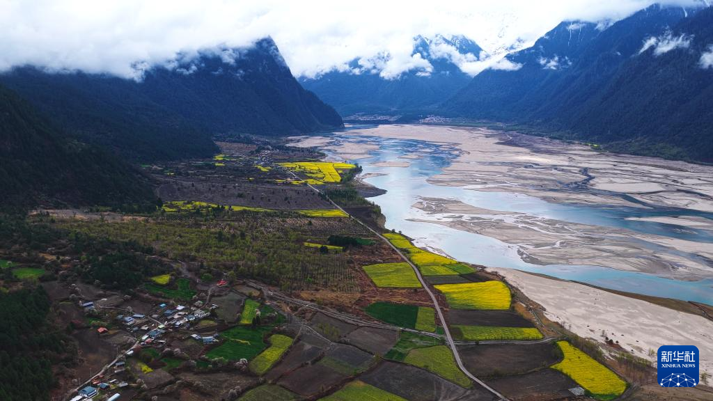 3月20日拍攝的西藏林芝市波密縣易貢鄉(xiāng)的油菜花田(無人機照片)。新華社記者 普布次仁 攝
