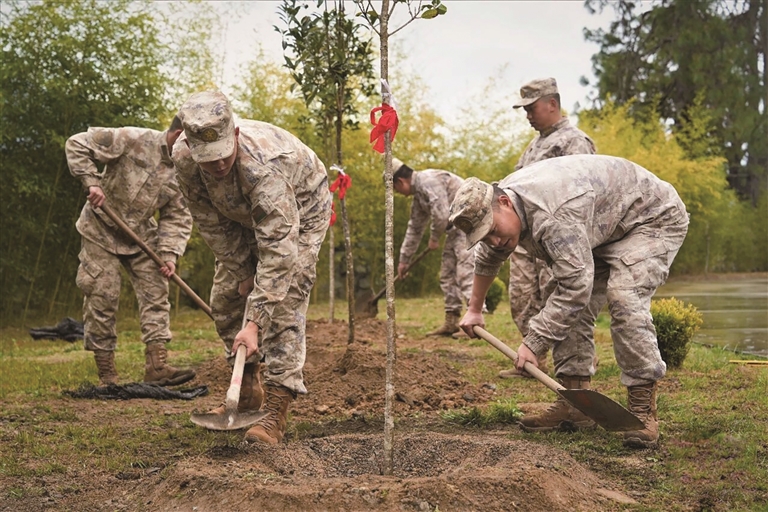 圖為官兵們正在植樹(shù)。通訊員 張杰 攝