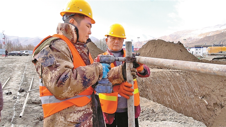 “我們就盯著今年9月底這個(gè)節(jié)點(diǎn)。”項(xiàng)目負(fù)責(zé)人蔡鵬指著排滿工期的進(jìn)度表說,“由于高原凍土施工期短,我們必須搶抓工期?!?/p>