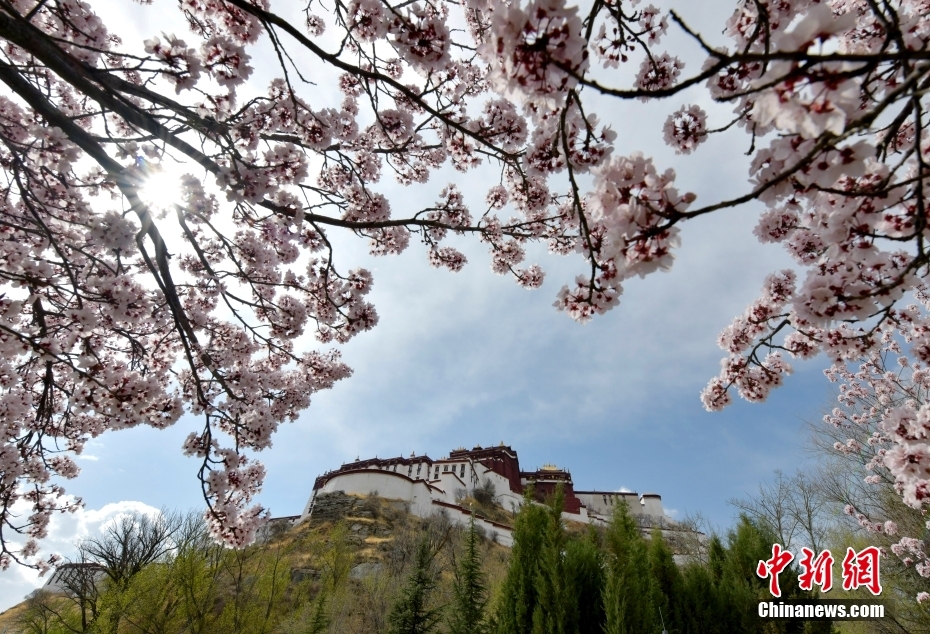 4月6日,西藏拉薩布達拉宮腳下春花綻放,與布達拉宮相互映襯。