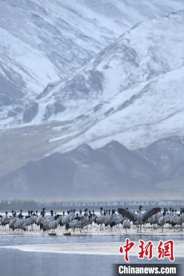 近日,西藏拉薩林周縣黑頸鶴保護(hù)區(qū)迎來一場(chǎng)大雪,黑頸鶴在雪山下的農(nóng)田、水庫里覓食、嬉戲。近年來,隨著生態(tài)保護(hù)力度加大,來拉薩市林周縣越冬的黑頸鶴等候鳥越來越多。被譽(yù)為愛情忠貞之鳥的黑頸鶴,是中國(guó)國(guó)家一級(jí)保護(hù)動(dòng)物,作為高原生態(tài)變化指示性物種,主要棲息于海拔2500米至5000米的高原草甸、河谷、沼澤間。它有個(gè)可愛的藏文名叫“沖沖”,每年從藏北地區(qū)遷徙到拉薩北部的河谷。