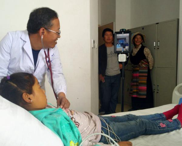 國家兒童醫(yī)學(xué)中心—上海兒童醫(yī)學(xué)中心的遠程會診中心里,重癥醫(yī)學(xué)科的張建醫(yī)師正通過屏幕與遠在千里之外的西藏日喀則市人民醫(yī)院重癥科次桑醫(yī)生討論一名極重度貧血的11歲患者的病情。[詳細] -