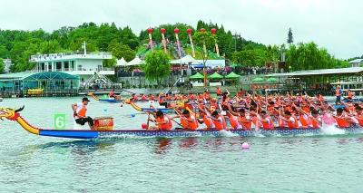 在四川省綿陽市舉行的第七屆綿陽(仙海)端午文化旅游節(jié)龍舟比賽。 新華社記者 陳地攝