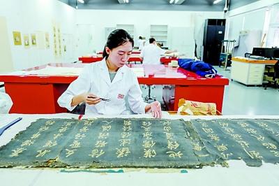 一名修復師在故宮文物醫(yī)院修復室修復故宮收藏的書法作品。新華社記者 劉潺攝