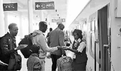 由中國企業(yè)采用全套中國標(biāo)準(zhǔn)和中國裝備建造的非洲第一條跨國現(xiàn)代電氣化鐵路——亞吉鐵路于2018年1月正式投入商業(yè)運(yùn)營。圖為3月25日,在埃塞俄比亞首都亞的斯亞貝巴,列車員在亞吉鐵路拉布車站檢票。新華社發(fā)