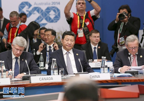 2014年11月15日,二十國集團(tuán)領(lǐng)導(dǎo)人第九次峰會在澳大利亞布里斯班舉行。國家主席習(xí)近平出席會議并發(fā)表題為《推動創(chuàng)新發(fā)展 實(shí)現(xiàn)聯(lián)動增長》的重要講話。新華社發(fā)