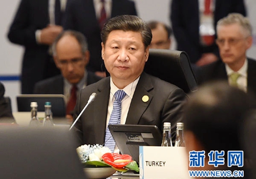 2015年11月15日,二十國集團(tuán)領(lǐng)導(dǎo)人第十次峰會在土耳其安塔利亞舉行。國家主席習(xí)近平出席并發(fā)表題為《創(chuàng)新增長路徑 共享發(fā)展成果》的重要講話。這是習(xí)近平出席第一階段會議。新華社記者李學(xué)仁攝