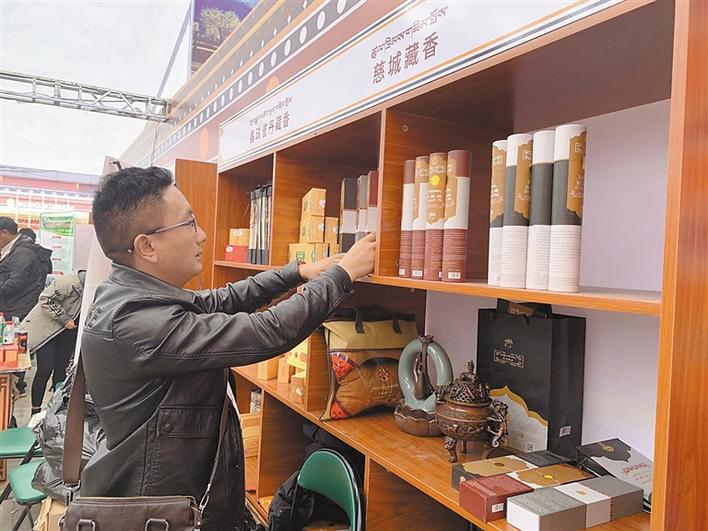 圖為慈成藏香廠的工作人員在擺放藏香產品。記者 王雨霏 王雅慧 攝