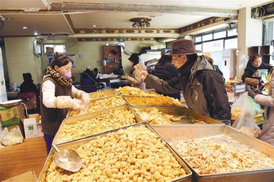 隨著藏歷新年日益臨近,拉薩街頭巷尾出現(xiàn)各種玲瑯滿目的藏式年貨,讓年味兒越來(lái)越濃,而構(gòu)成這年味兒最重要的元素之一就是“卡塞”的香甜味兒。 “卡塞”是一種用白面、酥油油炸制成的藏式點(diǎn)心,是家家戶戶過(guò)年的必備品,更是年貨市場(chǎng)的寵兒。