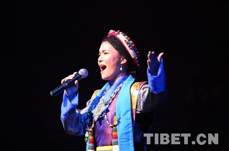 圖為開幕式現(xiàn)場(chǎng)歌手傾情演唱首屆西藏文化藝術(shù)節(jié)主題曲《格桑花開》 攝影:王佳豪