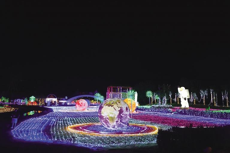 象雄美朵首屆國潮光影秀分為星際迷航、迷霧森林、遇見·螢火之光、激情北極光、時光隧道五個板塊。隨著彩燈亮起,星辰、太空人、火箭、綠森林、花海、孔雀等景觀清晰地展現(xiàn)在大家面前,通過藝術(shù)與科技巧妙地結(jié)合,立體呈現(xiàn)各種自然場景。