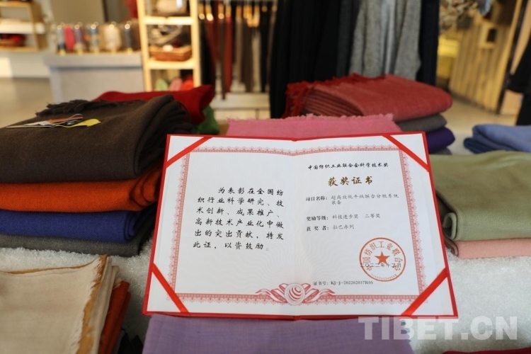 牦牛的生存環(huán)境決定了牦牛絨比普通羊毛更加保暖、柔軟,但也帶來了紡織上的技術(shù)難題。牦牛絨很細(xì),纖維的卷曲較少并且卷曲形態(tài)不規(guī)則,成條成紗難度大。在不斷的探索中,團(tuán)隊(duì)發(fā)現(xiàn)牦牛絨與蠶絲混紡能改善牦牛絨的可紡性,這解決了一大技術(shù)難題,公司還因此獲得知識(shí)產(chǎn)權(quán)專利及多項(xiàng)科學(xué)技術(shù)獎(jiǎng)項(xiàng)。