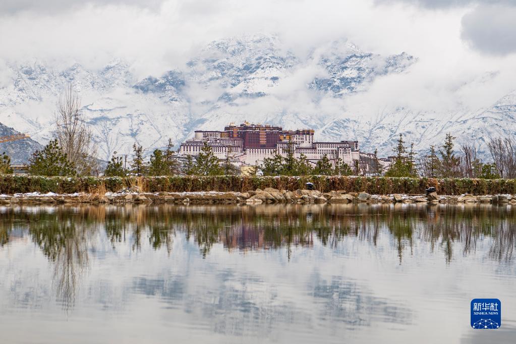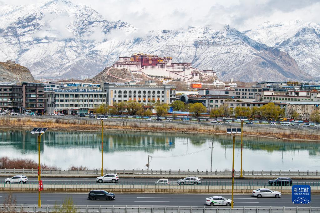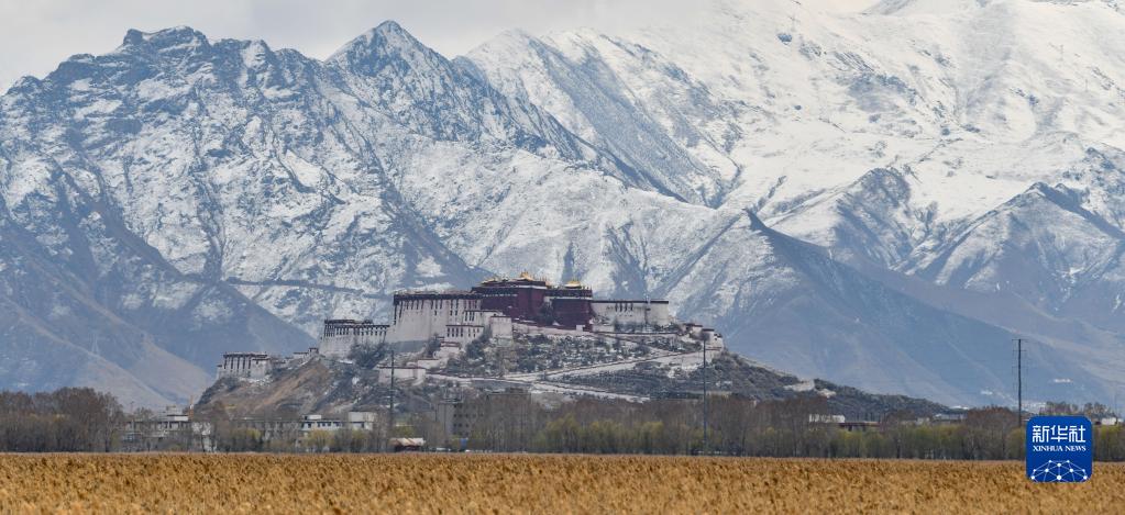 從拉魯濕地拍攝的雪后布達拉宮(3月30日攝)。新華社記者 晉美多吉 攝