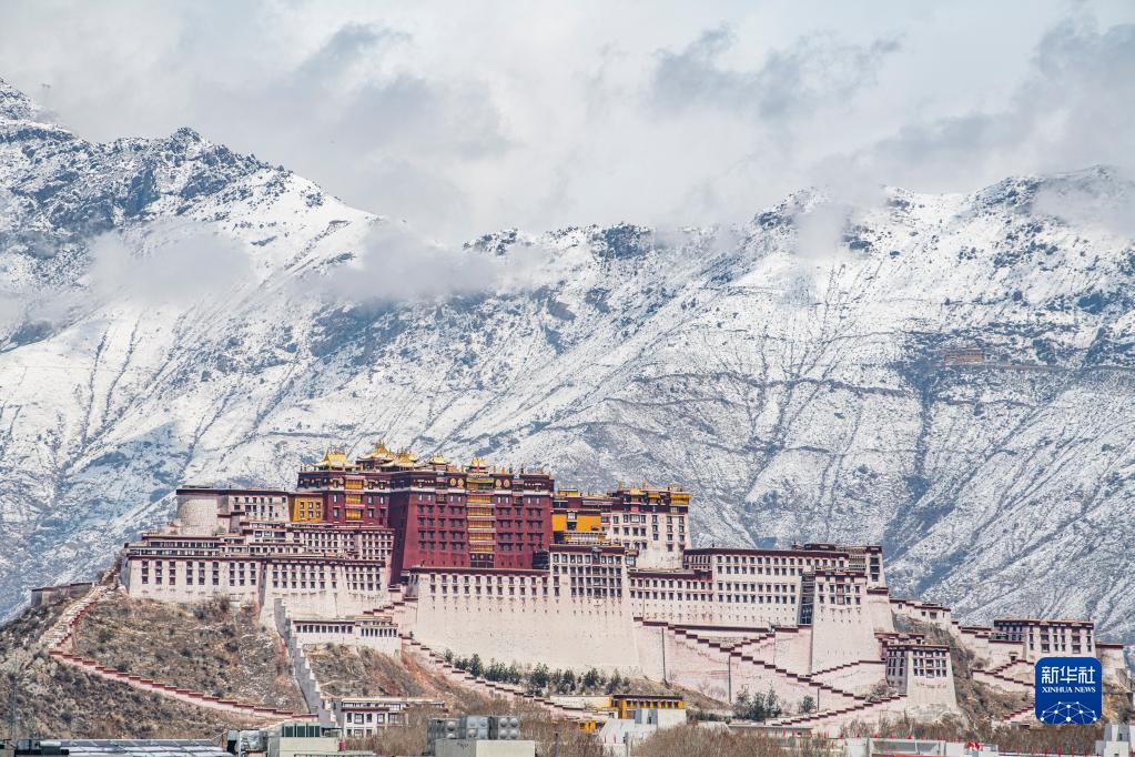 從拉薩南山公園拍攝的雪后布達拉宮(3月30日攝)。新華社記者 晉美多吉 攝