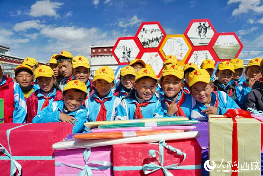 拉薩市當(dāng)雄縣小學(xué)的孩子們收到愛心人士送來的禮物。人民網(wǎng) 李海霞攝