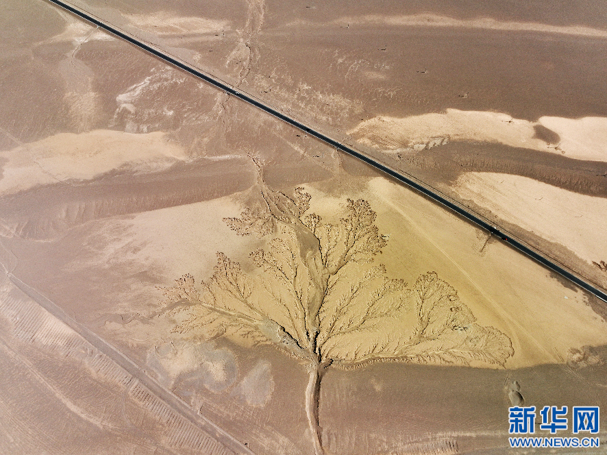 這是4月8日拍攝的位于阿里地區(qū)改則縣的“大地之樹”景觀(無人機照片)。 新華網(wǎng)發(fā) 曹枝清 攝