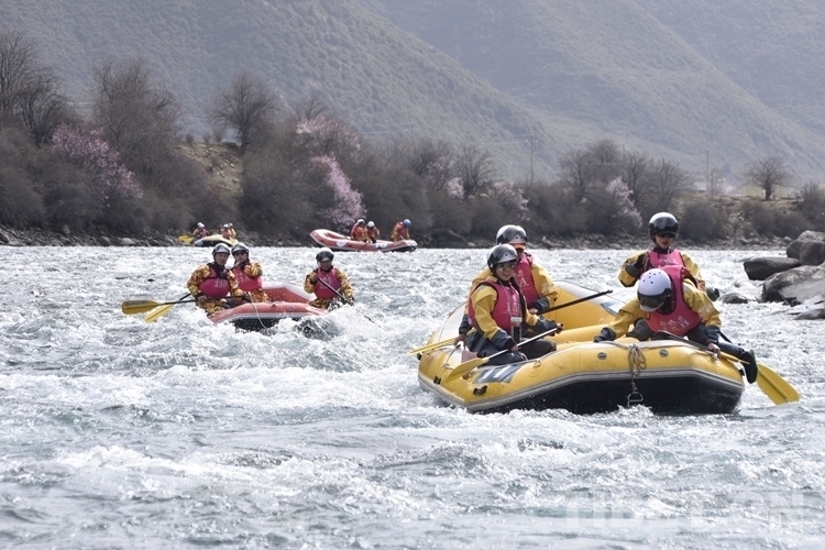 圖為4月16日,7公里激流漂流筏追逐賽比賽現(xiàn)場(chǎng) 攝影:次旦拉姆