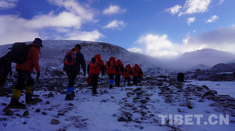 當(dāng)天凌晨4點(diǎn),西藏拉薩市當(dāng)雄縣羊八井鎮(zhèn)周圍還是一片寂靜之時(shí),參加洛堆峰登山探險(xiǎn)活動(dòng)的山友們已從羊八井高山訓(xùn)練基地出發(fā)前往洛堆峰登山探險(xiǎn)。經(jīng)過長達(dá)7小時(shí)30分左右的長途跋涉,第一批登山人員成功登頂海拔6010米的洛堆峰,此時(shí)金色的太陽早已籠罩大地,白皚皚的雪山聳立在大地之上,在陽光的照耀下顯得格外壯觀。