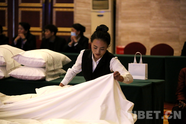 中國西藏網(wǎng)訊 5月11日,由西藏自治區(qū)旅游發(fā)展廳、西藏自治區(qū)總工會、共青團(tuán)西藏自治區(qū)委員會、西藏自治區(qū)婦女聯(lián)合會主辦,西藏旅游飯店業(yè)協(xié)會承辦的2023年西藏自治區(qū)星級飯店從業(yè)人員服務(wù)技能競賽在拉薩開賽。45名選手圍繞中餐宴會擺臺、西餐宴會擺臺、中式鋪床及夜床服務(wù)、前廳服務(wù)4個項目同臺競技?! ?/p>