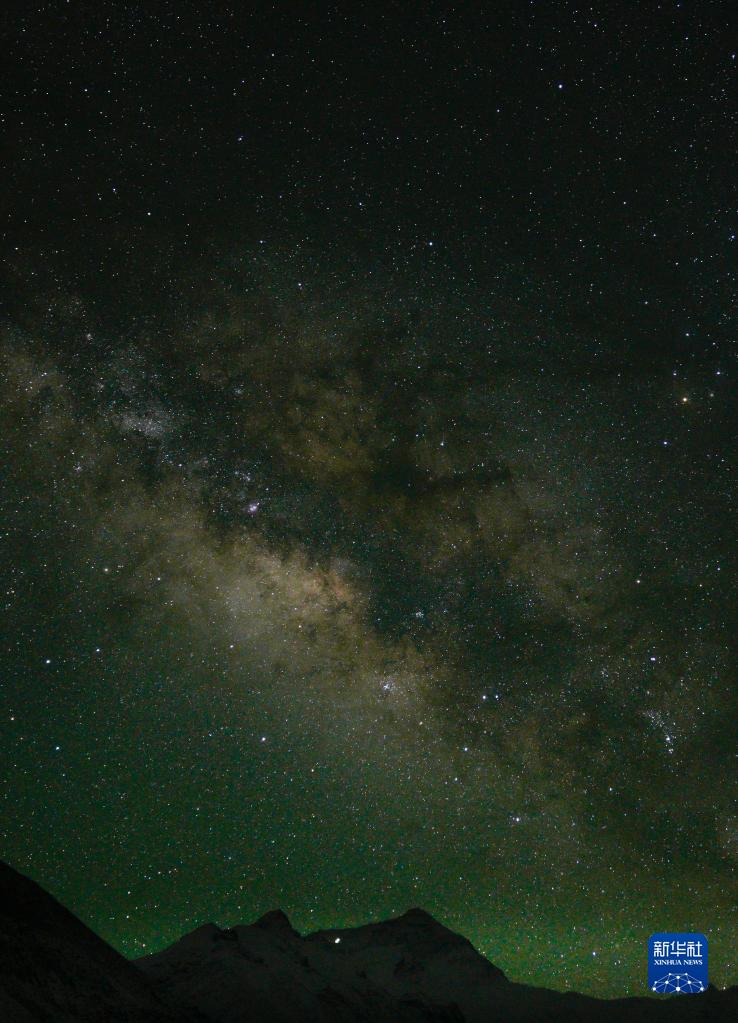 這是5月12日凌晨拍攝的珠穆朗瑪峰上空的銀河。新華社記者 孫非 攝