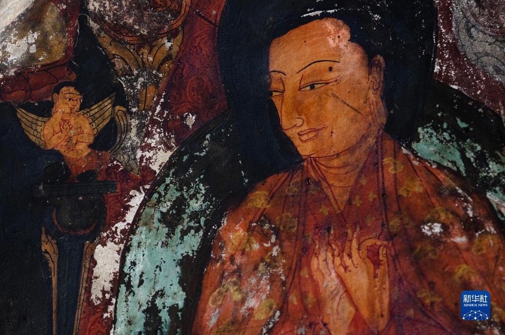 這是5月26日拍攝的皮央石窟壁畫中的人物造型。新華社記者 費(fèi)茂華 攝