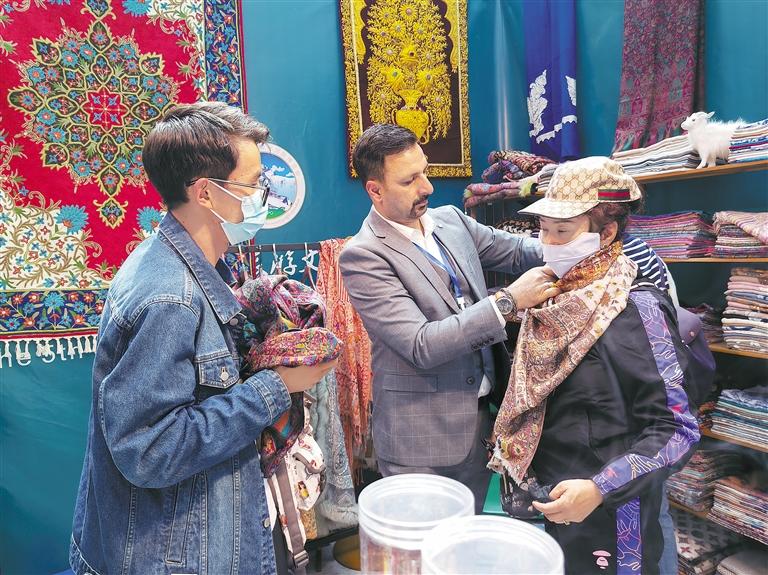 尼泊爾木碗、伊朗波斯地毯、巴基斯坦玉石……在2號(hào)館的國(guó)際精品展區(qū),每一個(gè)國(guó)家的展臺(tái)前都擠滿(mǎn)了熱情的市民?!耙恢倍己芟矚g伊朗的地毯,這次終于買(mǎi)到了,在藏博會(huì)買(mǎi)更便宜,真的很開(kāi)心?!崩_居民扎西告訴記者。