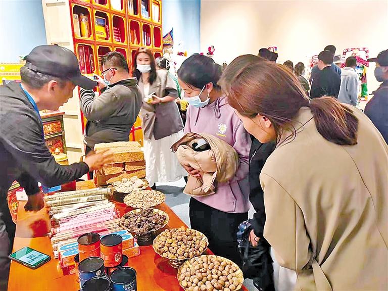 步入2號(hào)館西藏特色展區(qū)之山南市形象館,身著山南服飾的講解員、充滿(mǎn)山南特色的各類(lèi)農(nóng)產(chǎn)品,來(lái)往的人絡(luò)繹不絕,或駐足品嘗黑青稞糌粑、或與參展商留下聯(lián)絡(luò)方式?!拔覀儊?lái)自山南市洛扎縣,今天帶了卡墊、奶渣、辣椒等13種產(chǎn)品,通過(guò)藏博會(huì)這么好的平臺(tái),把家鄉(xiāng)的特色產(chǎn)品推銷(xiāo)出去、宣傳出去,我感到非常欣喜。”來(lái)自山南市的參展商索南旦增說(shuō)。