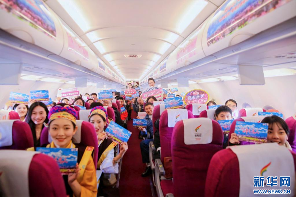 1日,西藏航空“林芝桃花號”TV9730愛情主題航班現(xiàn)場。(西藏航空供圖)