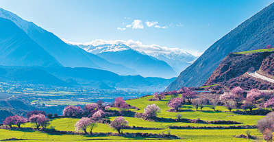 東風(fēng)著意,先上小桃枝。每年3月至4月,被稱為“雪域江南”的西藏自治區(qū)林芝市,就成了桃花的海洋。奔流的江水邊,碧綠的青稞地里,高聳的雪山下,一樹樹嫣紅如醉霞緋云般開放。不遠處云杉林蒼翠茂密,山頂潔白的積雪平添了清幽。當(dāng)大自然再次將繽紛色彩傾瀉而下,高原的春天便如約而至。