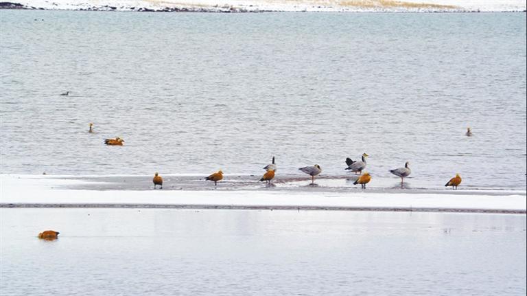 野鴨棲息在林周縣卡孜水庫。