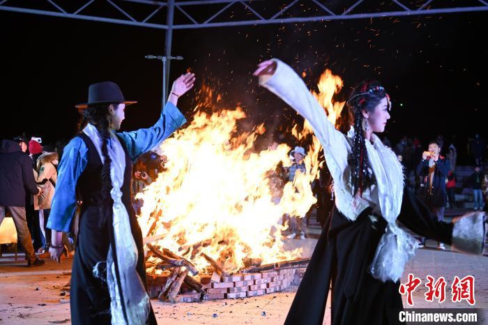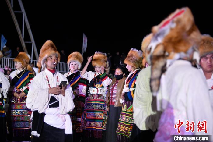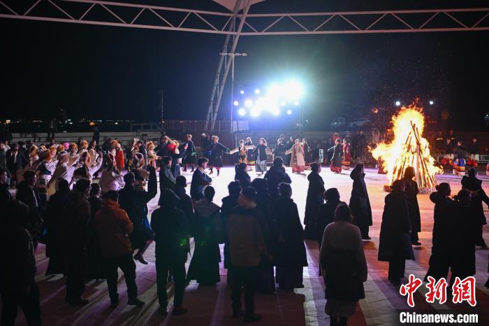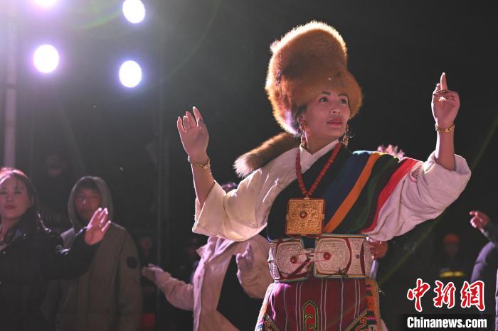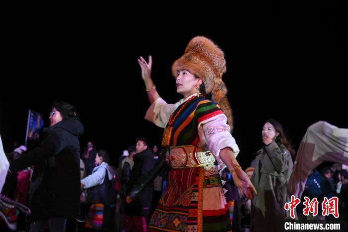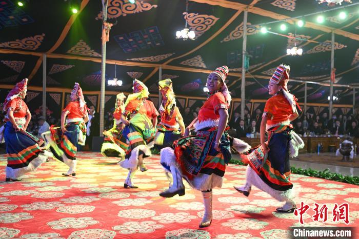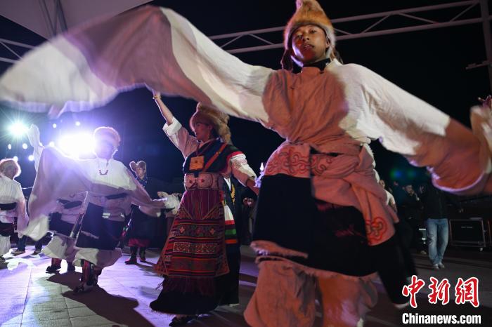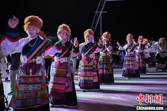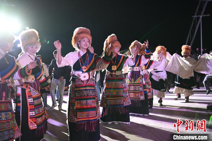 圖為“情定當(dāng)雄”篝火鍋莊晚會(huì)文藝演出現(xiàn)場(chǎng)。中新社記者 貢嘎來松 攝