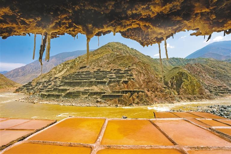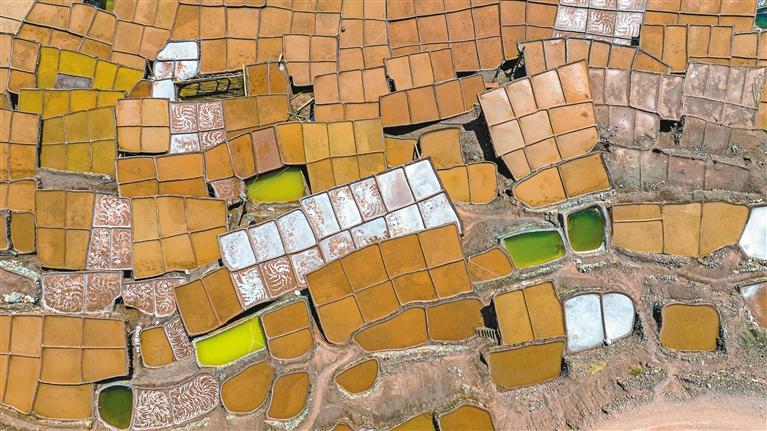 鹽田里,60歲的乃柯正和丈夫一起用木拍夯實(shí)鹽田?!艾F(xiàn)在用泵抽水輕松多了,但拍鹽田的手藝不能丟。”老人的話語中,既有對(duì)科技的接納,也有對(duì)傳統(tǒng)的堅(jiān)守。鹽田下方,鹽晶垂落成簾,在山風(fēng)拂動(dòng)下閃爍微光,仿佛在訴說著什么。一塊塊鹽田如同一面面鏡子,既映照出千年文明的厚重,也折射著鄉(xiāng)村振興的希望。當(dāng)鹽民們輕掃鹽田,他們掃的不僅是晶瑩的鹽,更是一份在傳承與創(chuàng)新中守護(hù)的鄉(xiāng)愁。 圖/記者 阿旺尼瑪