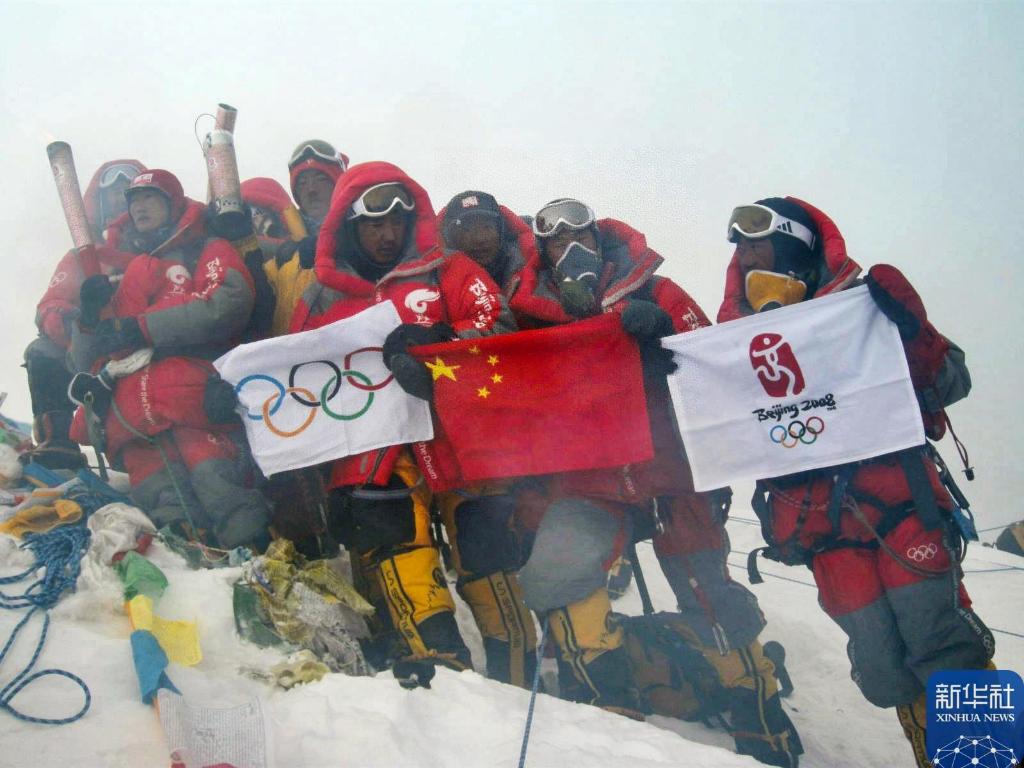 北京奧運(yùn)火炬在珠峰峰頂傳遞