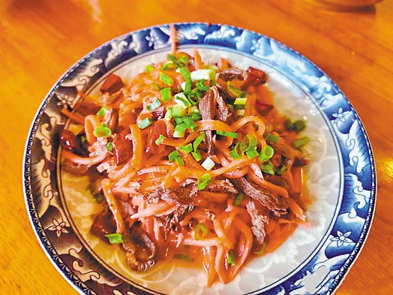 此外,飯桌上還有一道常見菜品——土豆燉牦牛肉。牦牛肉被譽(yù)為“牛肉之冠”,營養(yǎng)價值極高,與土豆一同燉煮,美味無比。土豆的軟糯與牛肉的筋道完美結(jié)合,每一口都能讓人感受到食材的鮮美和湯汁的醇厚。這道菜不僅美味,還是一道滋補(bǔ)身體的家常菜。