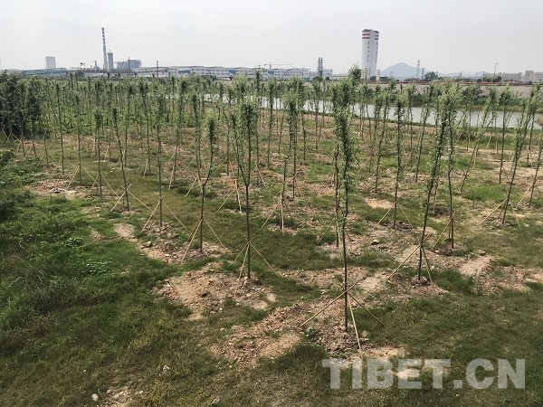 圖為今年岸邊新種的柳樹林