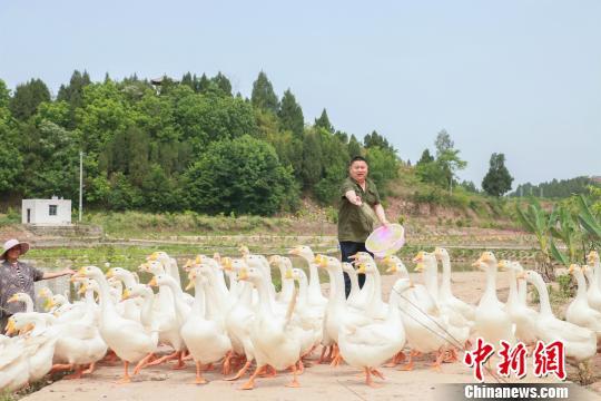 圖為蔣乙嘉正在喂養(yǎng)肉鵝。 蔣東宏 攝