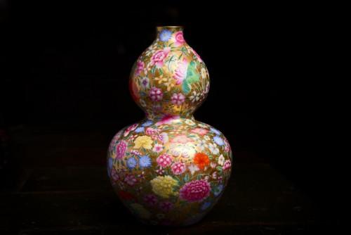 琺瑯彩金地萬(wàn)花葫蘆瓶