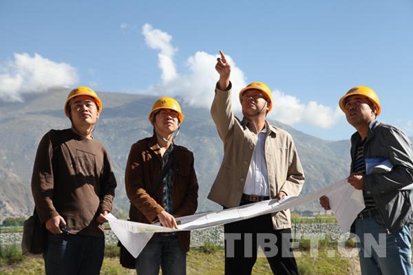 圖為2013年5月23日,劉爭平(右二)在拉日鐵路現(xiàn)場勘察。