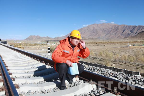 圖為2017年11月12日,劉爭平在拉日鐵路沿線調(diào)查線路。