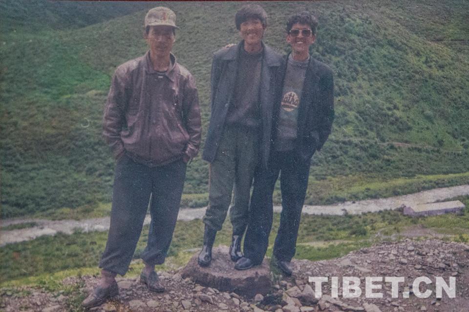 圖為嘎瑪(右一)和同事在玉麥公路合影。